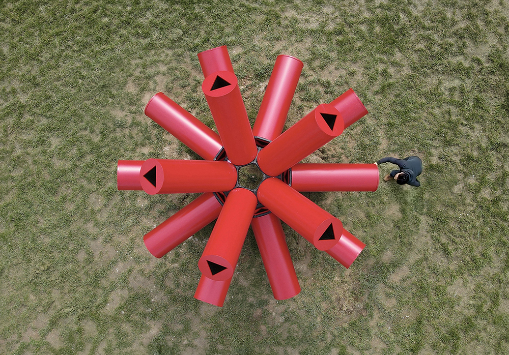 Beyond environmental engagement, Starburst fosters human connection. Each cylinder functions as a kaleidoscope, allowing people to view the environment or each other through shifting reflections. Entering the center of Starburst offers a simultaneous panoramic view, surrounding the viewer from all angles. Visitors standing at opposite ends of the cylinders can see kaleidoscopic images of each other, creating playful and engaging interactions.