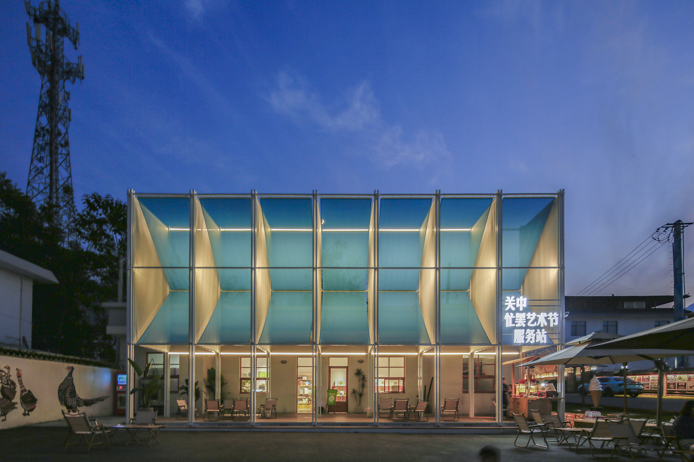 Caijia Po Village is located at the foot of the Qinling Mountains in southern Xi’an, surrounded by expansive wheat fields. In 2018, Professor Wu Xiaochuan, alongside faculty and students from the Xi’an Academy of Fine Arts, established the Guan Zhong Art Cooperative and launched the Guan Zhong Mangba Arts Festival, initiating a series of rural art intervention projects. People’s Architecture Office was invited to participate in the 5th Mangba Arts Festival, contributing the Fabric Plugin Visitor Center and the interactive installation Starburst to the event.